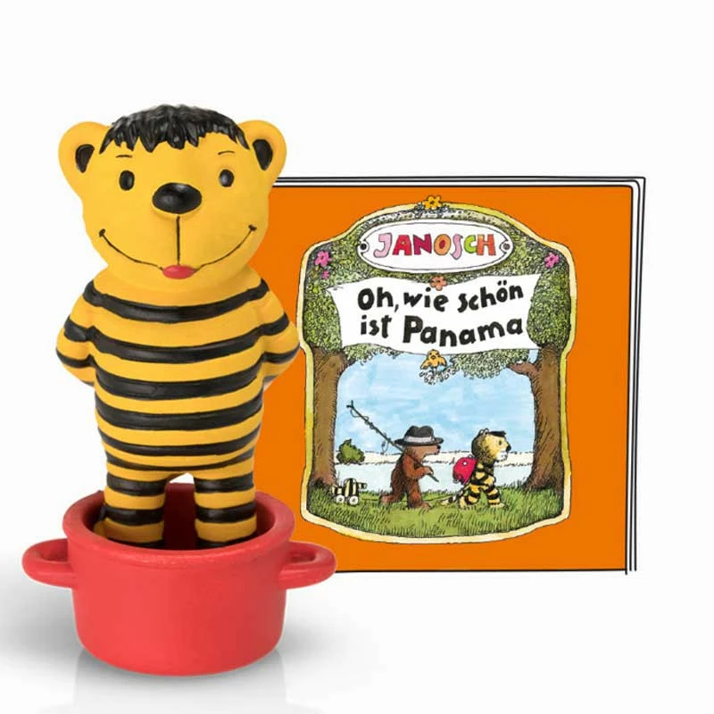 Der kleine Bär fischte eine Kiste aus dem Wasser, schnupperte daran und sagte: „Oooh, Bananen!“ Die Kiste roch nämlich nach Bananen. Und was stand auf der Kiste geschrieben? „Pa-na-ma“, las der kleine Bär … „Die Kiste kommt aus Panama. Oh, Panama ist das Land meiner Träume …“